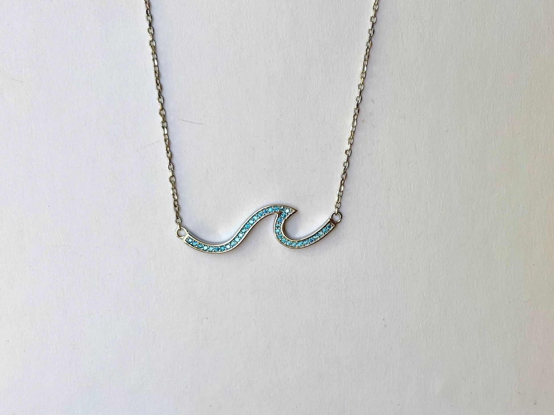 Hawaiian Blue Cubic Zirconia Wave Necklace - 925 Sterling Silver