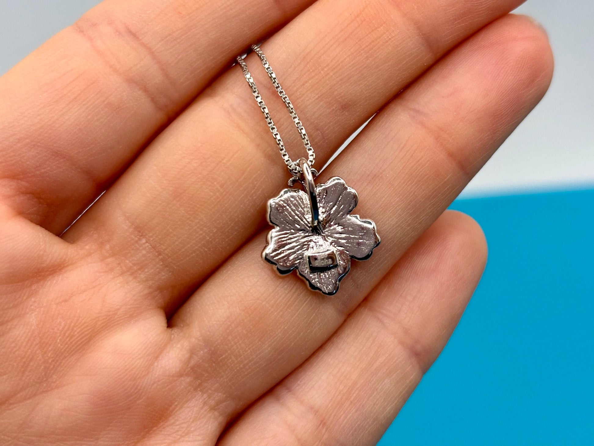 Hawaiian Hibiscus Flower Necklace 925 Sterling Silver Tarnish Free KOA WOOD Dainty Necklace with Chain Cute Gift for Her Gift for Girlfriend