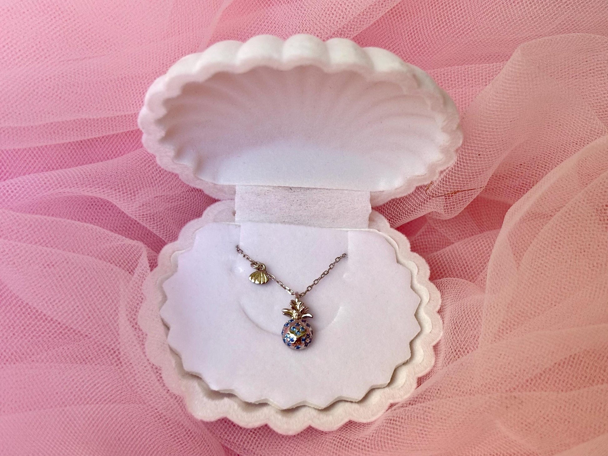 Hawaiian Pineapple Necklace With Shell Charm 925 Sterling Silver Waterproof Blue Topaz Necklace Birthday Gift for Her Gift For Mom