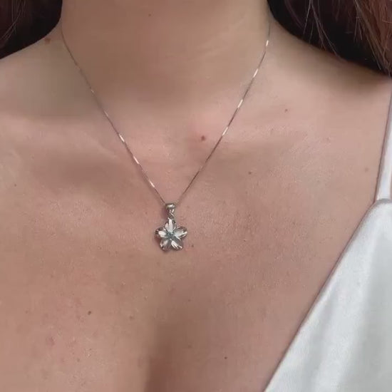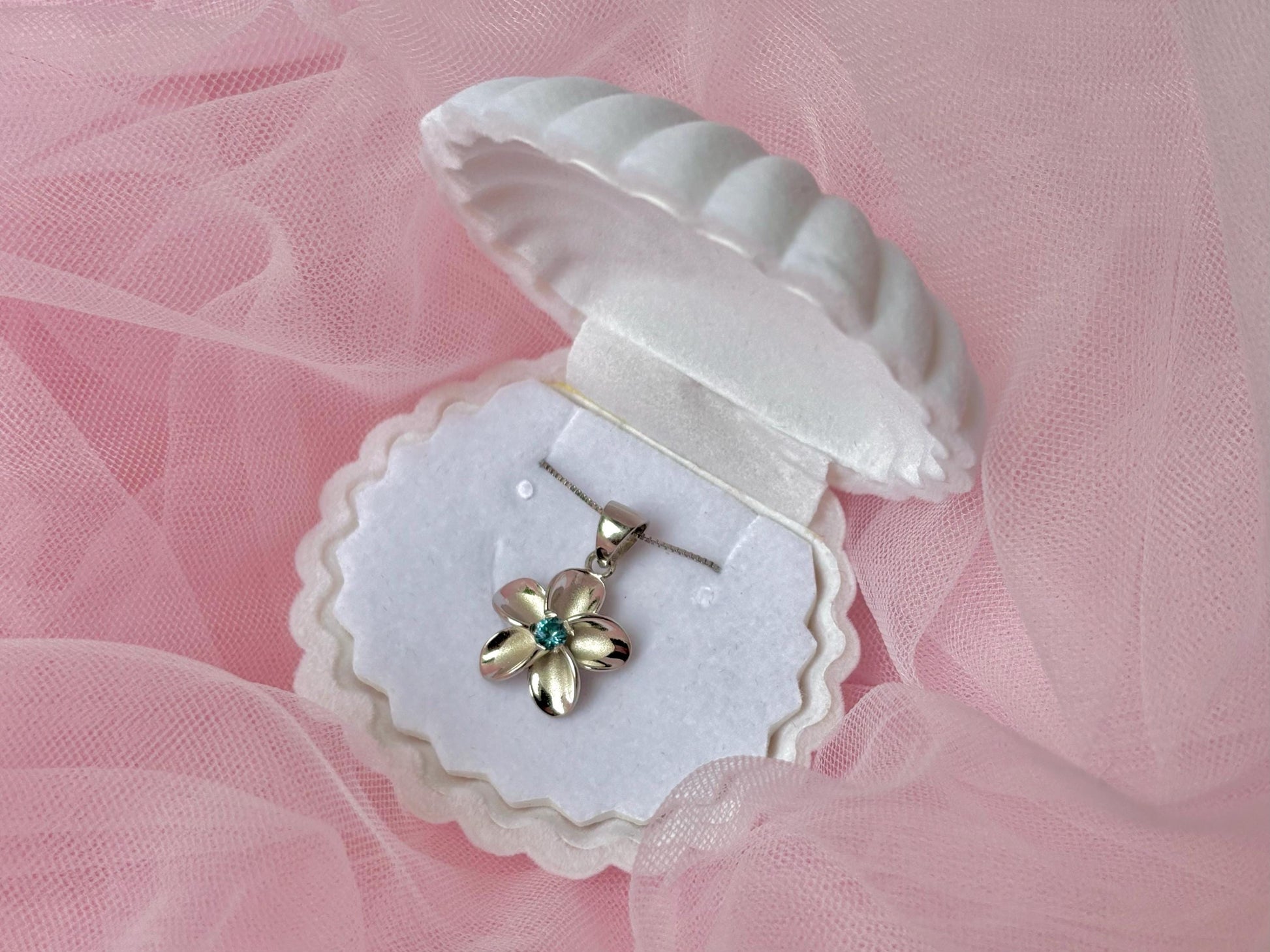 Hawaiian Plumeria Flower Blue Topaz 925 Sterling Silver Waterproof Plated Necklace w chain Cute Gift Wife Romantic Mom Girlfriend Stone