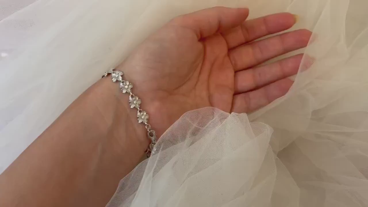 Hawaiian Plumeria Flower Bracelet Hawaiian Bracelet 925 Sterling Silver Tarnish Free - Birthday Gift for Her Gift for Mom Dainty Bracelet