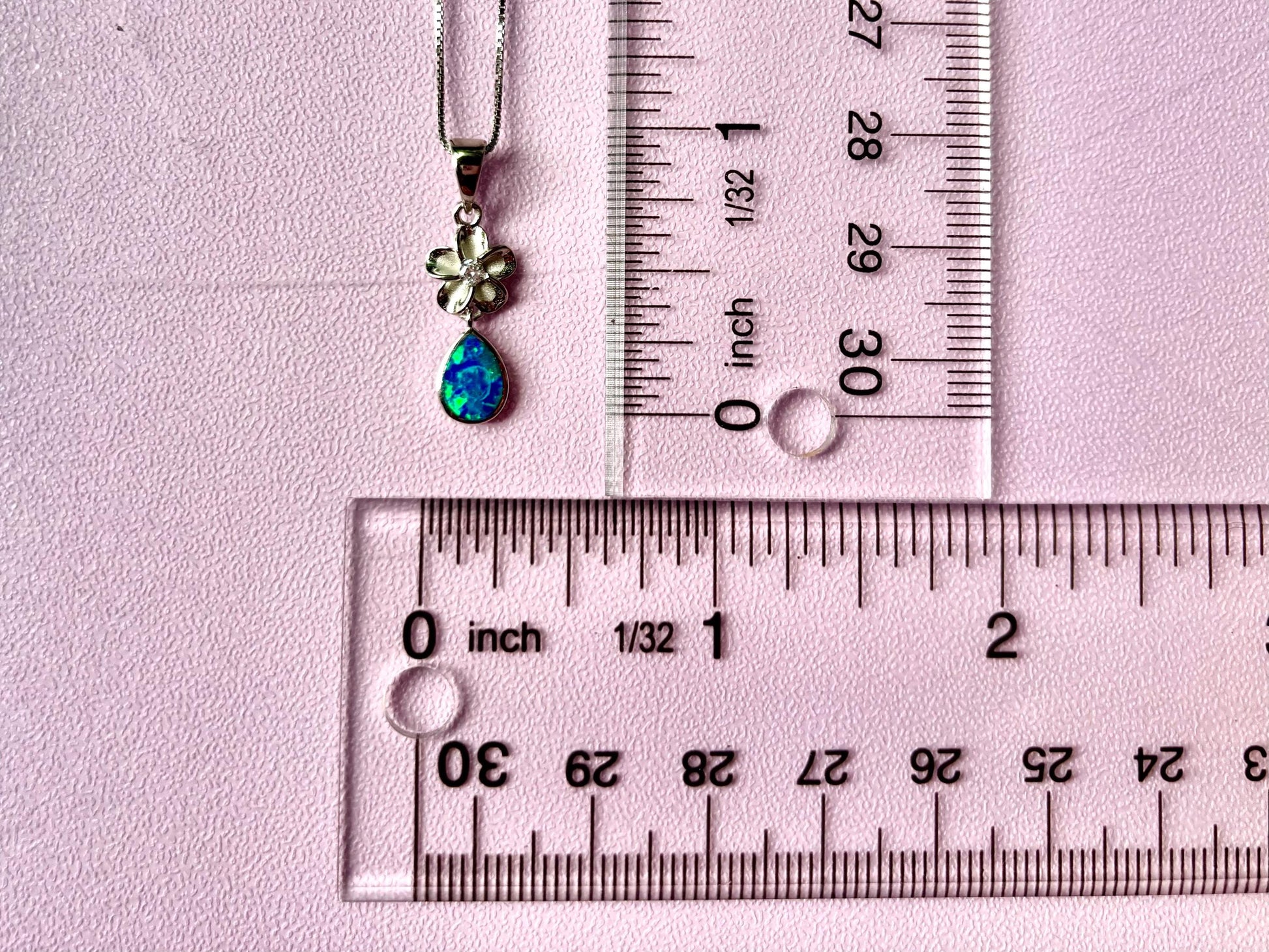 Hawaiian Plumeria Flower Necklace 925 Sterling Silver Waterproof Blue Opal Necklace With Chain Birthday Gift For Her - Gift for Mom, Wife