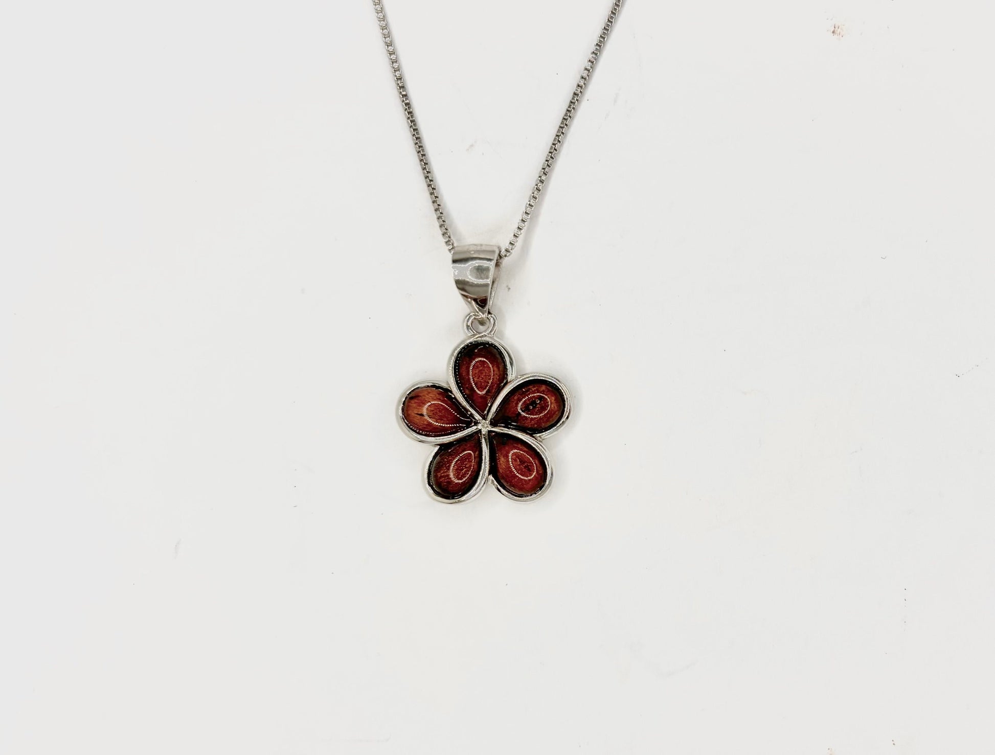 Hawaiian Plumeria Flower Necklace Koa Wood Necklace 925 Sterling Silver Tarnish Free With Chain Birthday Gift for Her Mother Wife Girlfriend
