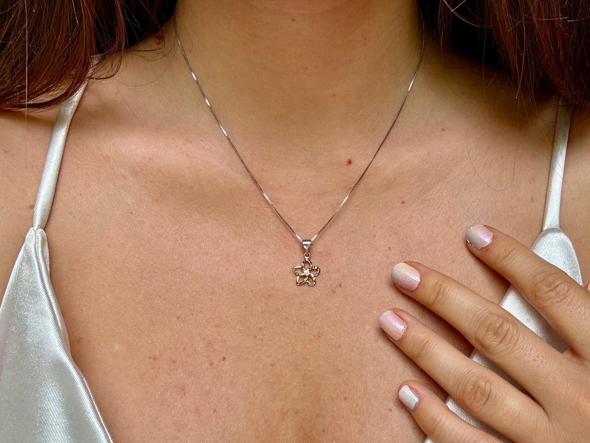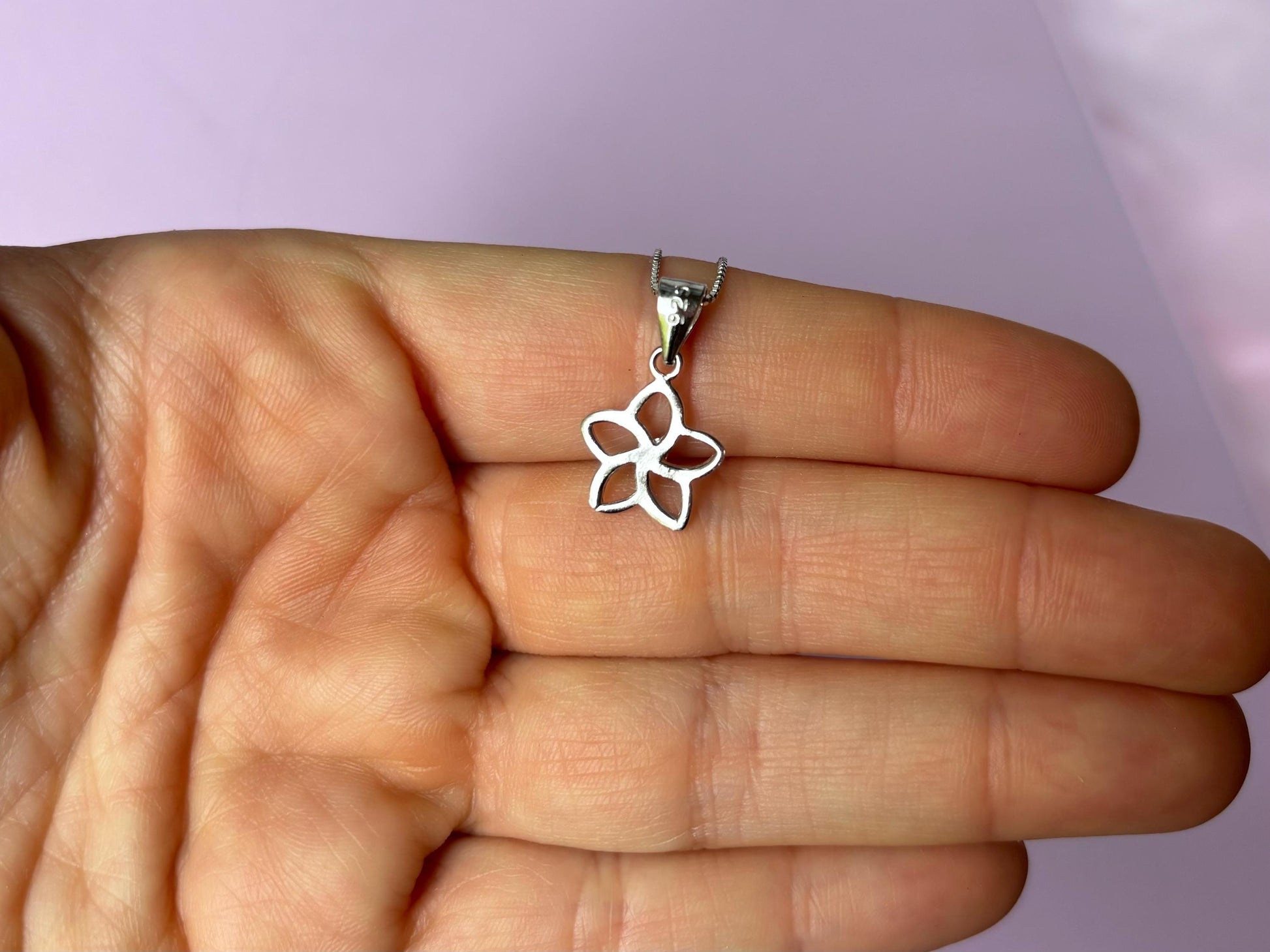Hawaiian Plumeria Flower Necklace with CZ Stone Flower Jewelry Gift for Her Birthday Gift for Wife, Mom, Girlfriend Sterling Silver
