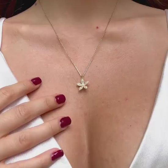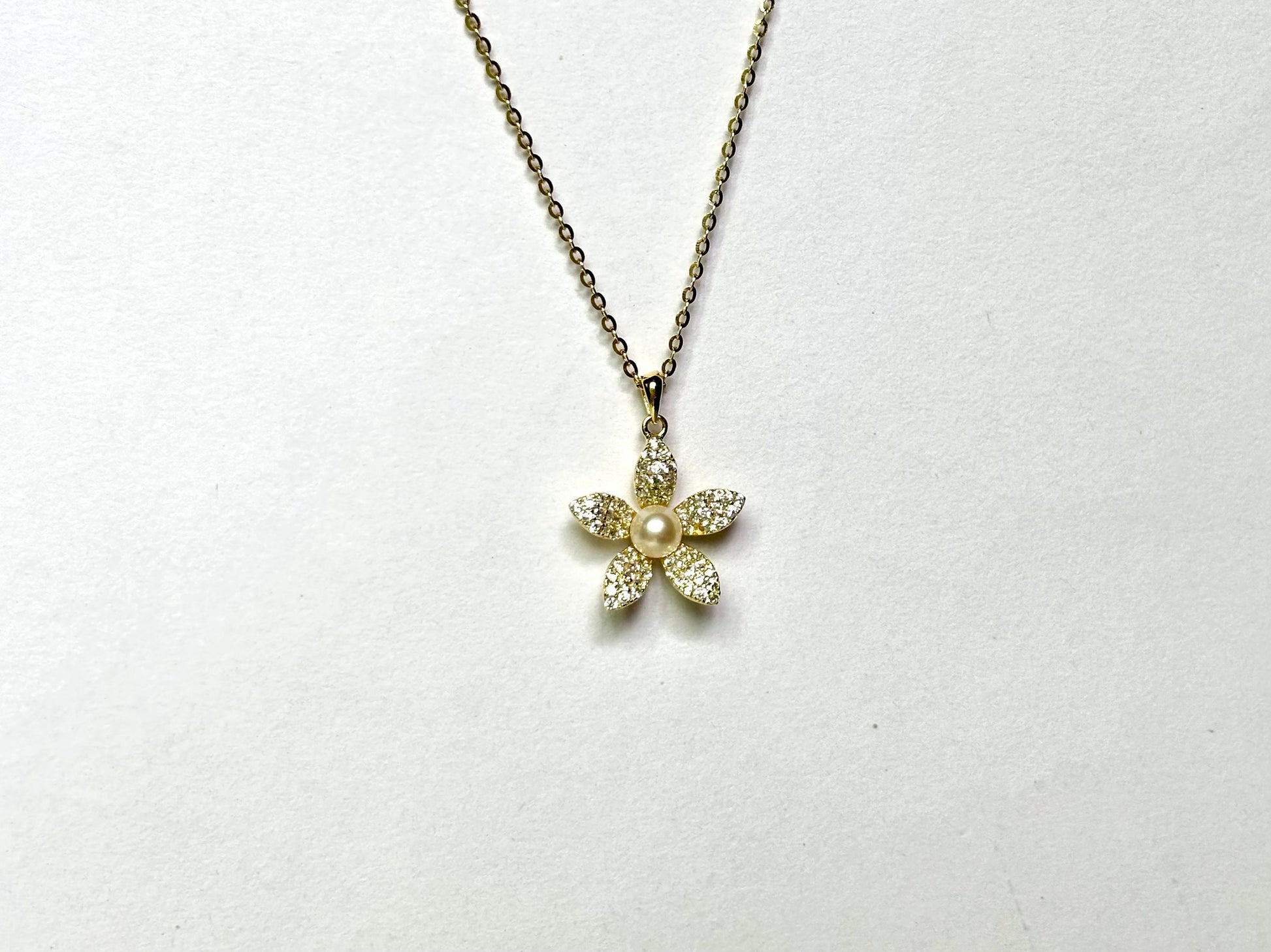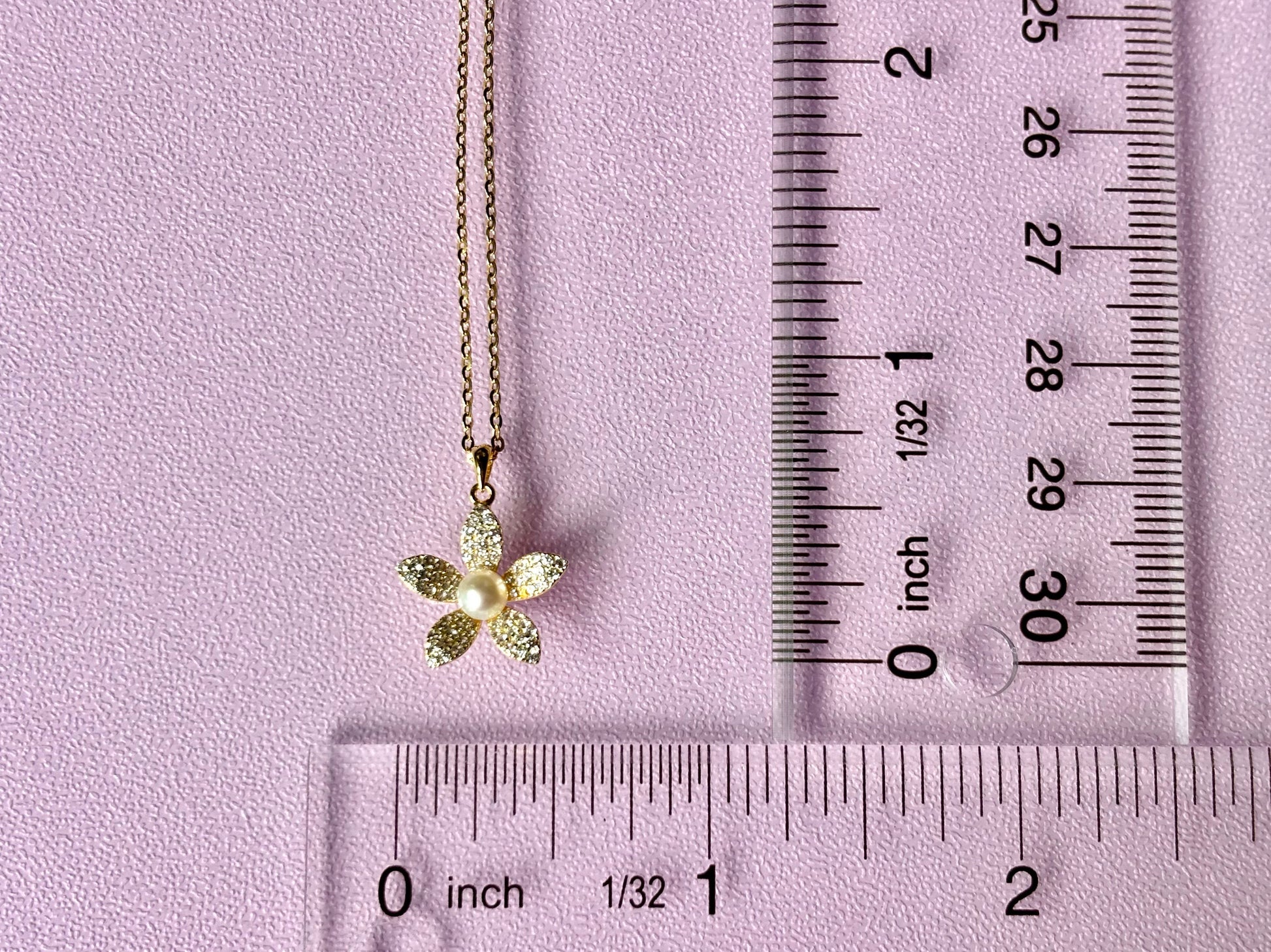 Hawaiian Plumeria Genuine Pearl Flower Necklace w chain 925 Sterling Silver 14K Gold Plated Cute Romantic Gift for her Tarnish Free CZ Stone