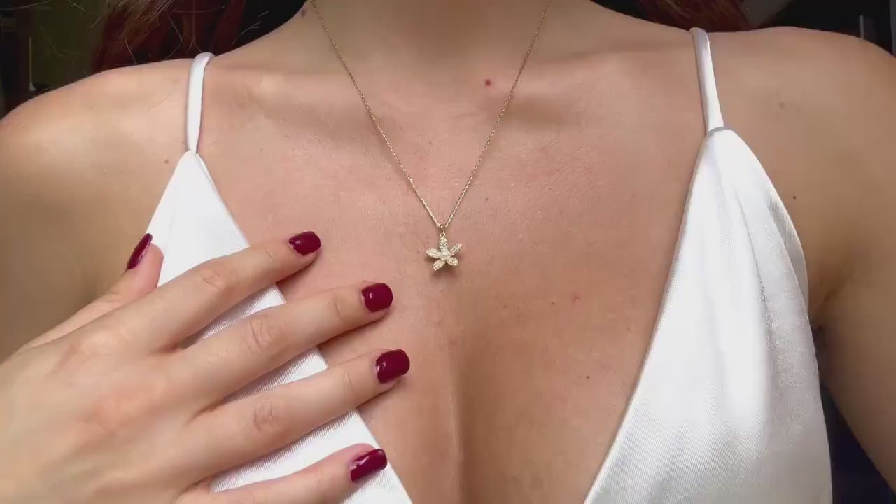 Pendant: This beautiful 14K gold plated 925 Sterling Silver pendant is rhodium plated to prevent it from tarnishing. It has round pearl set on the flower. Flower is covered by cubic zirconia stones. Pendant width is approximately 0,74 inches (19 millimeters), height is approximately 0,59 inches (15 millimeters).