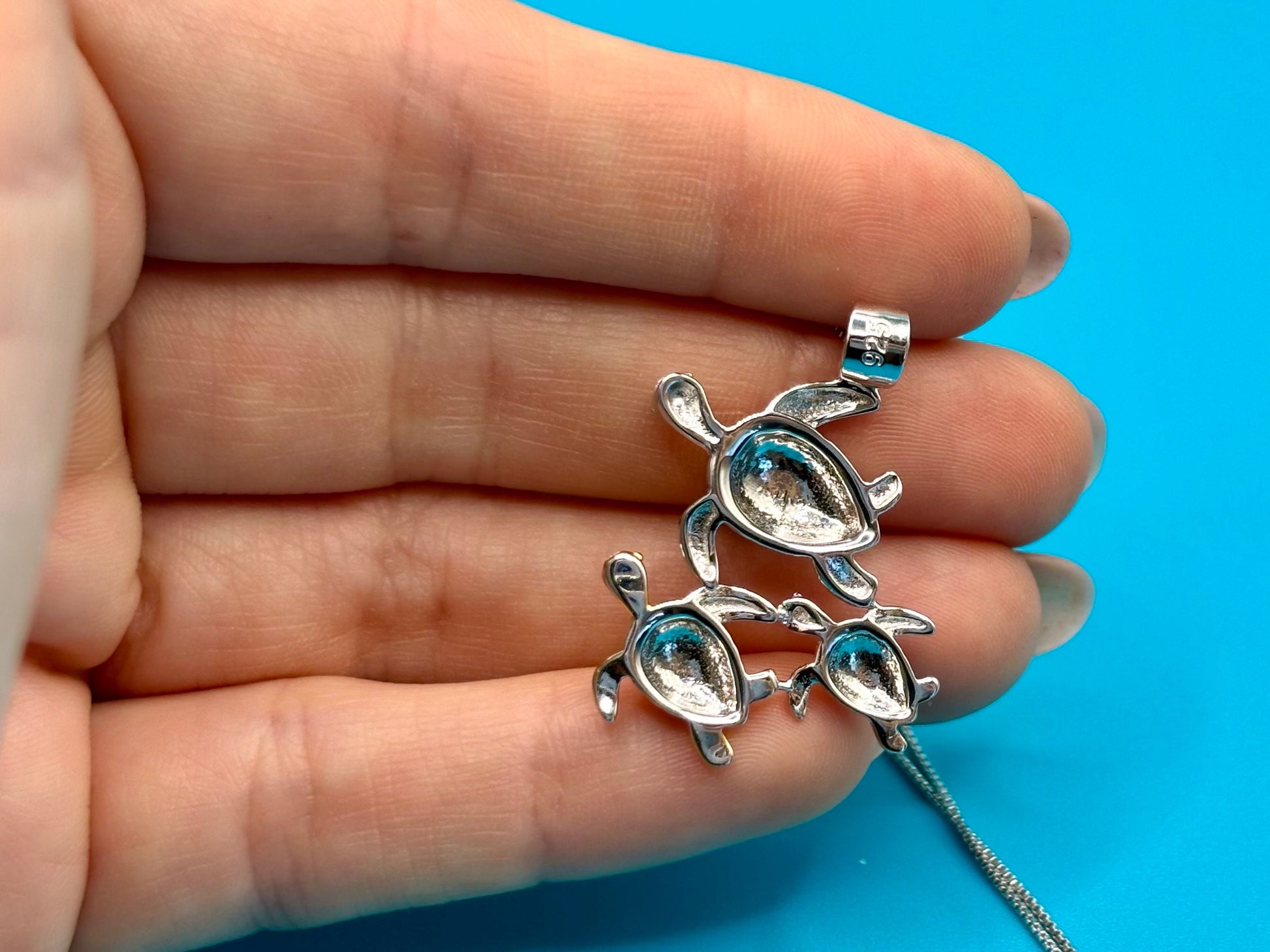 Hawaiian Turtle Family Necklace 925 Sterling Silver 3 Color Tarnish Free 14k Gold n Rose Plated w chain Honu Gift for Her Wife Oceanlovers