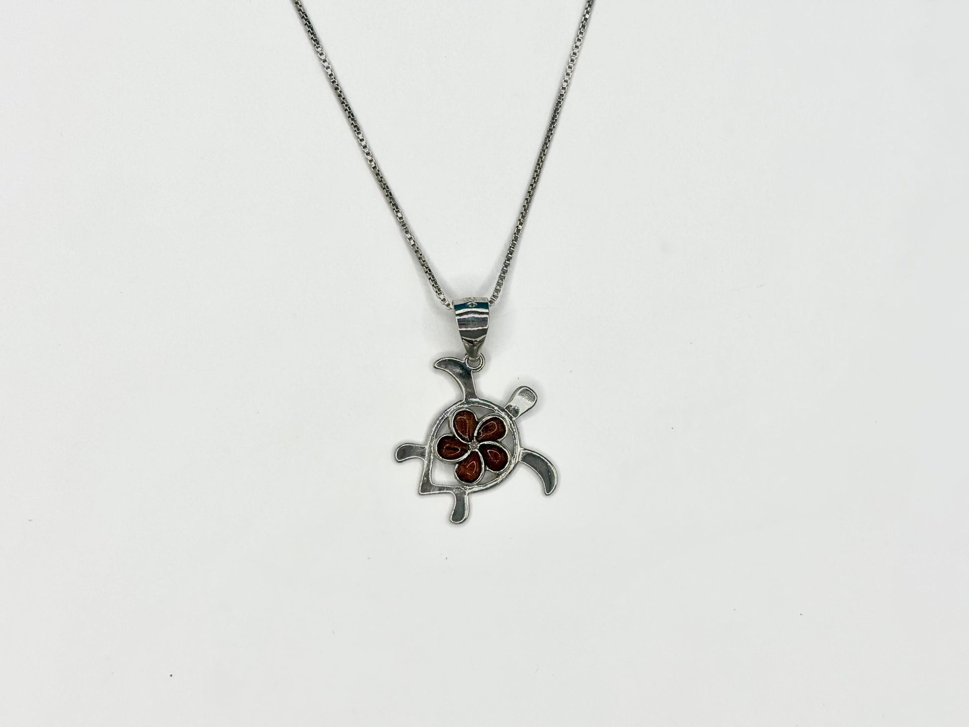 Hawaiian Turtle Necklace 925 Sterling Silver KOA WOOD Necklace Plumeria Flower Necklace With Chain Birthday Gift for Her Gift for Mom