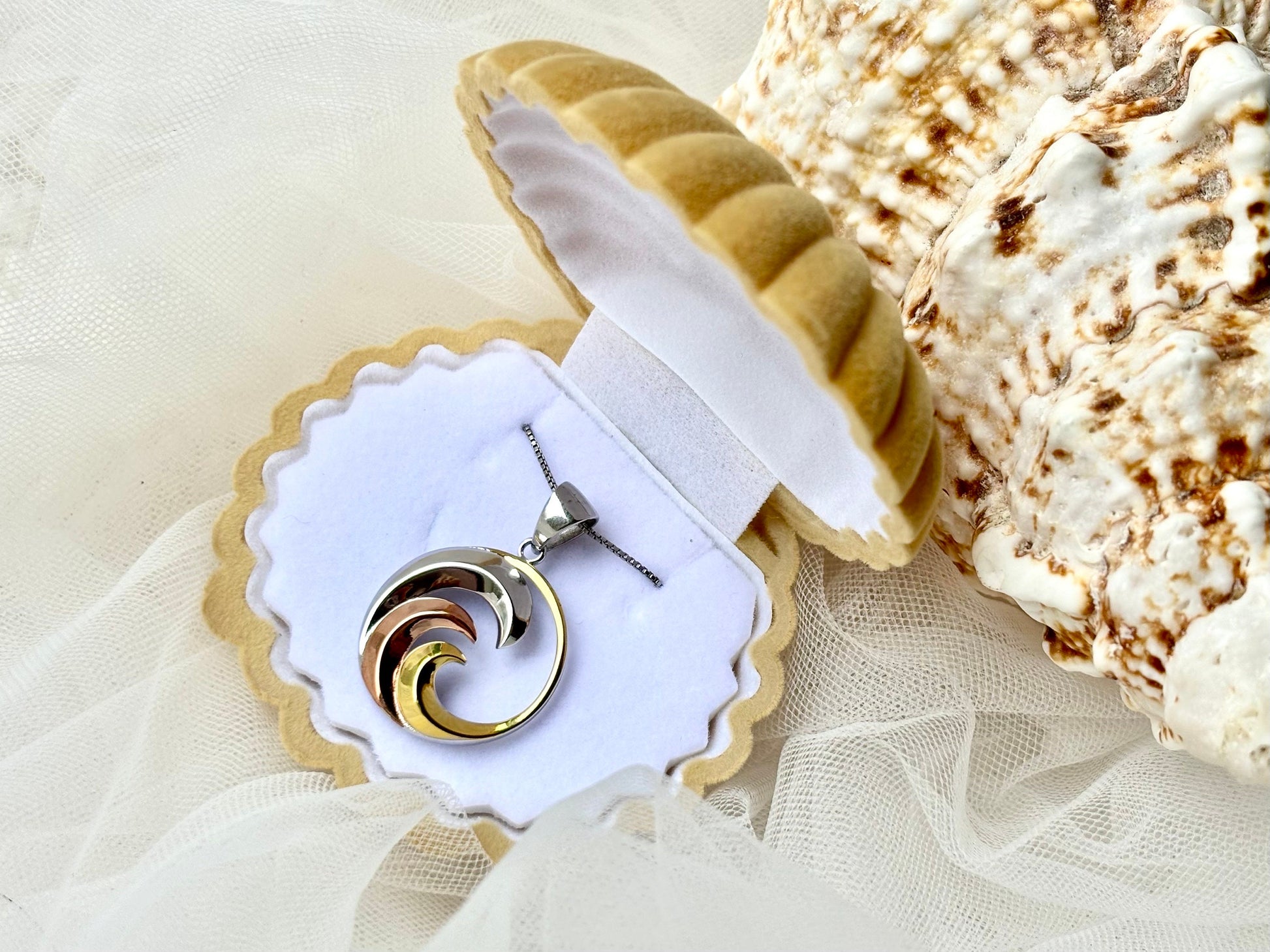 Hawaiian Wave Necklace 925 Sterling Silver 3 Color Rhodium 14k Gold Plated chain Cute Gift for Wife Mom Girlfriend Surf surfer ocean MD