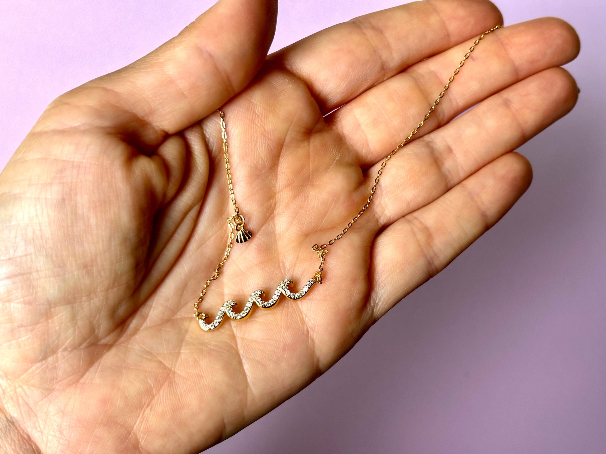 This necklace beautifully represents the waves (nalu), a symbol of our most precious treasures. It embodies the ebb and flow of life and serves as a divine messenger for us. May it bring you as much aloha as it brings to us.
