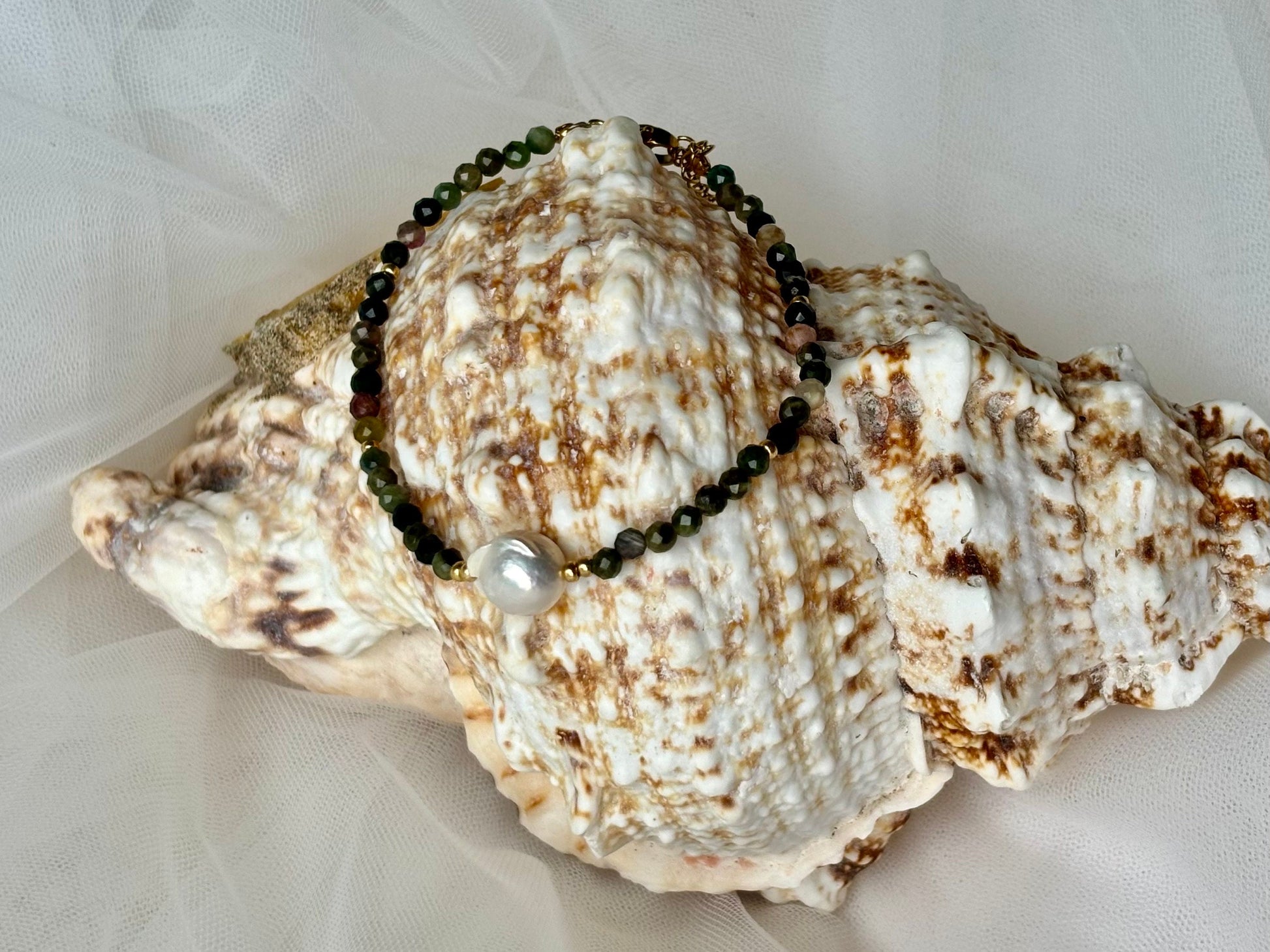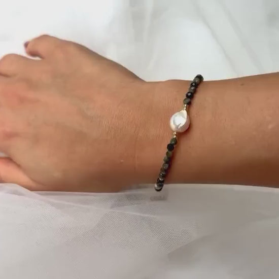 Healing Crystal Birthstone October Bracelet Genuine Freshwater White Pearl Rainbow Tourmaline Bracelet Adjustable Tarnish Free Gift For Her