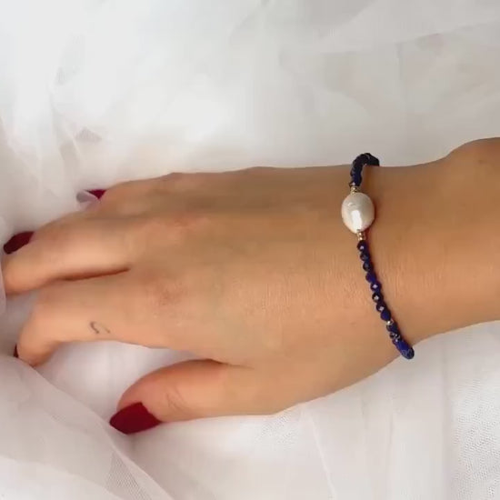 Healing Crystal December Birth Stone Bracelet Genuine Freshwater White Pearl Lapis Lazuli Bracelet Adjustable Tarnish Free Cute Gift For Her