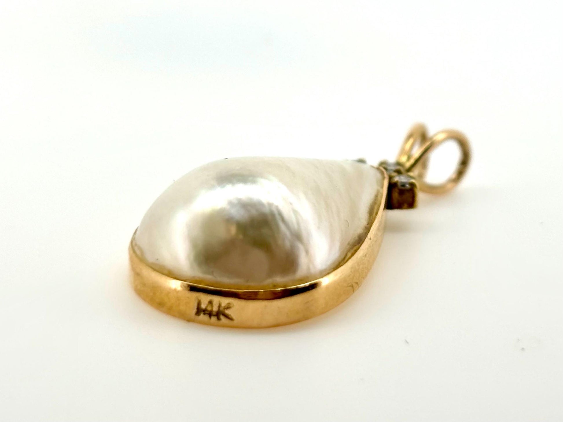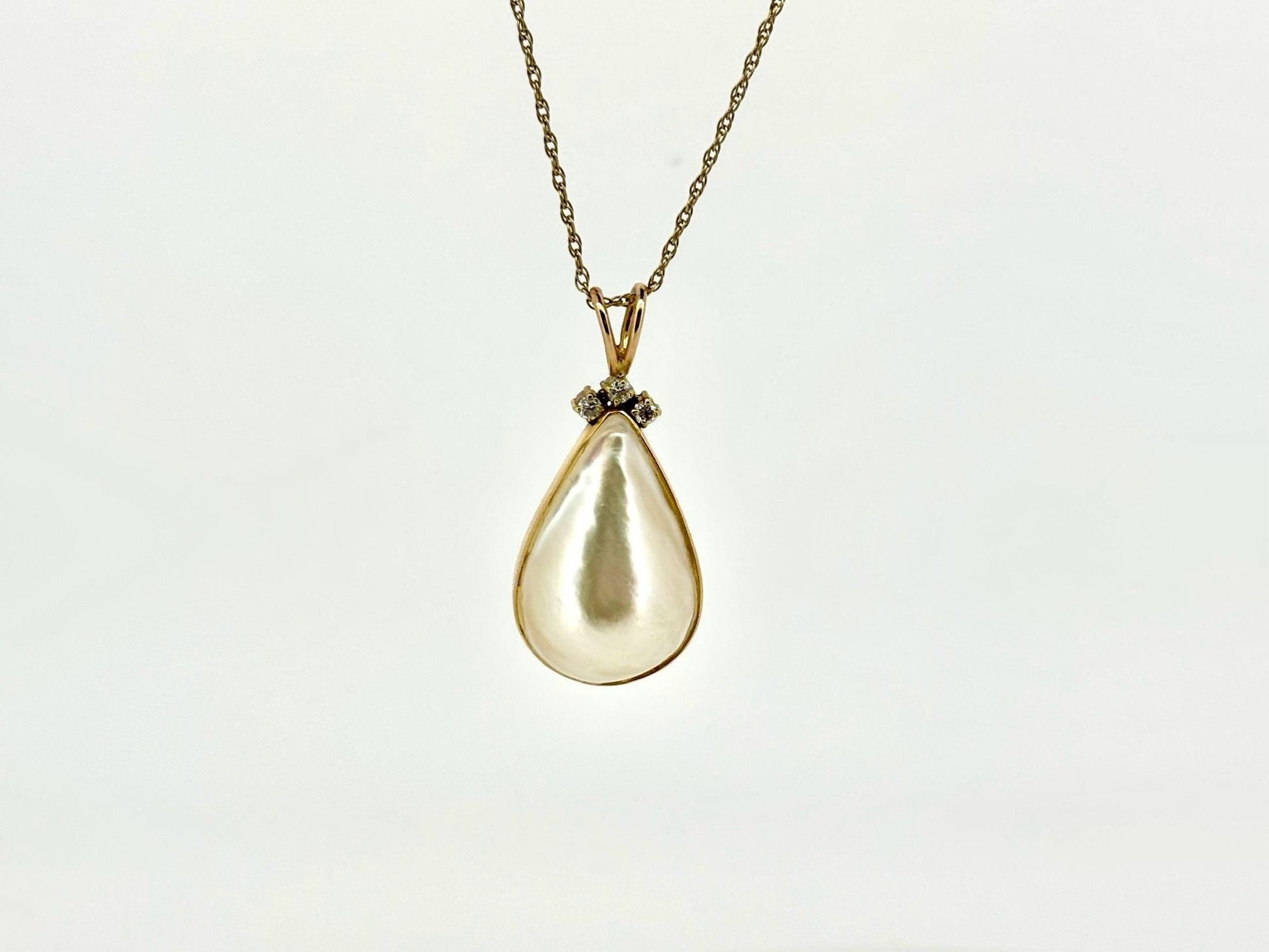 Natural Mother of Pearl Necklace Pearl Pendant 14K Gold White Pearl Necklace Birthday Gift for Her Diamond Pendant