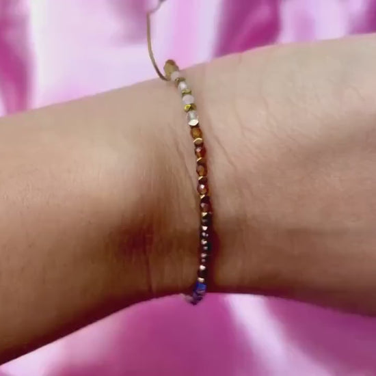 Rainbow Tourmaline Chakra Bracelet Genuine Natural Freshwater White Pearl Bracelet, Adjustable Gold Stainless Steel Birthday Gift for Her